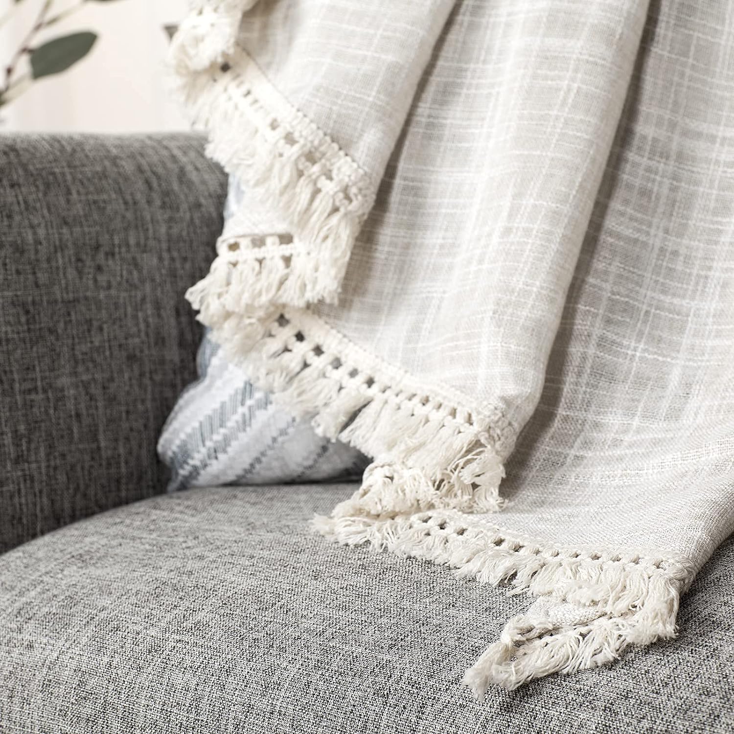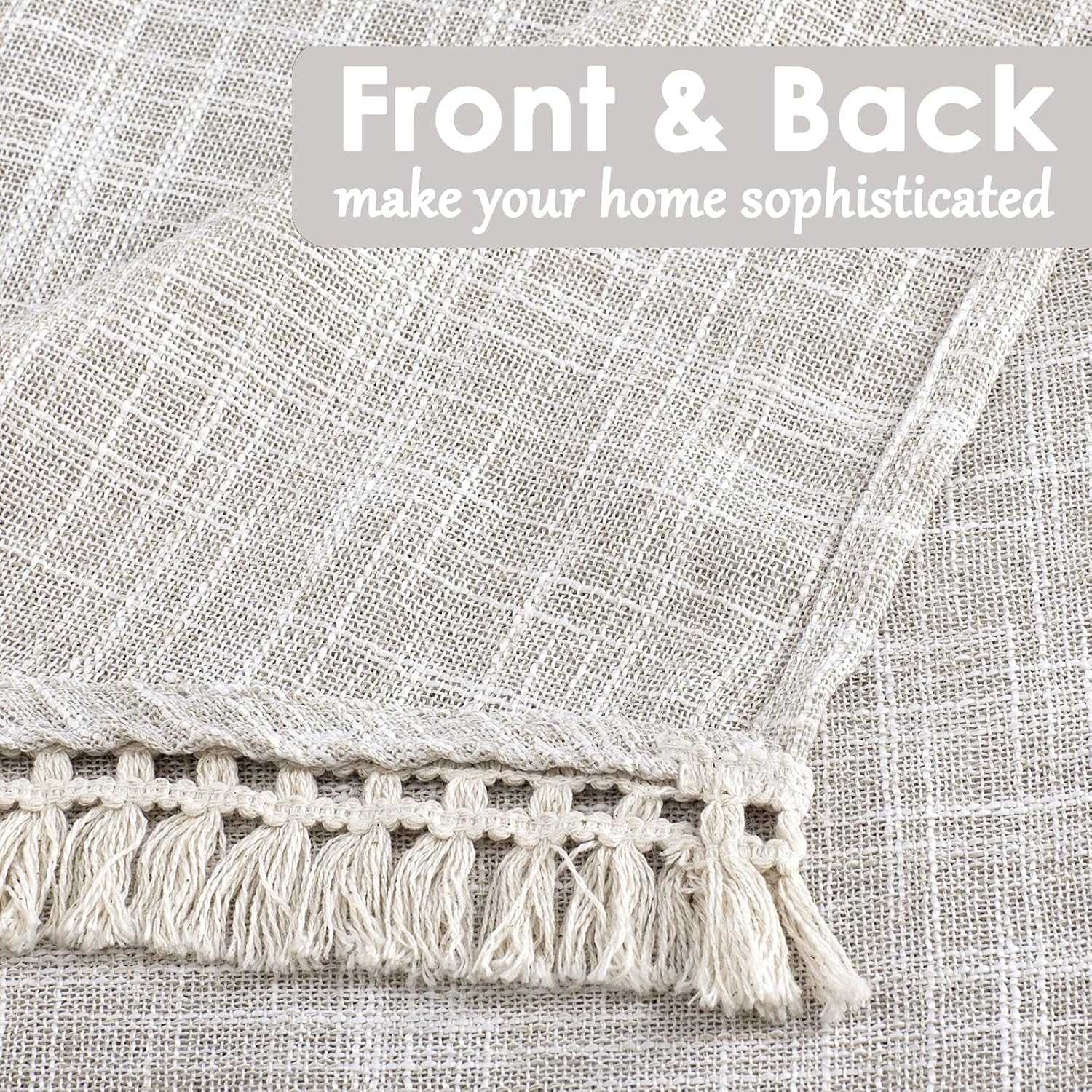 Beda Home Tassel Linen Textured Swag Curtain Valance for Farmhousesu2019 Kitchen; Light Filtering Rustic Short Swag Topper for Small Windows Bedroom Privacy Added Rod Pocket Design (Nature 36×36-2PCs)