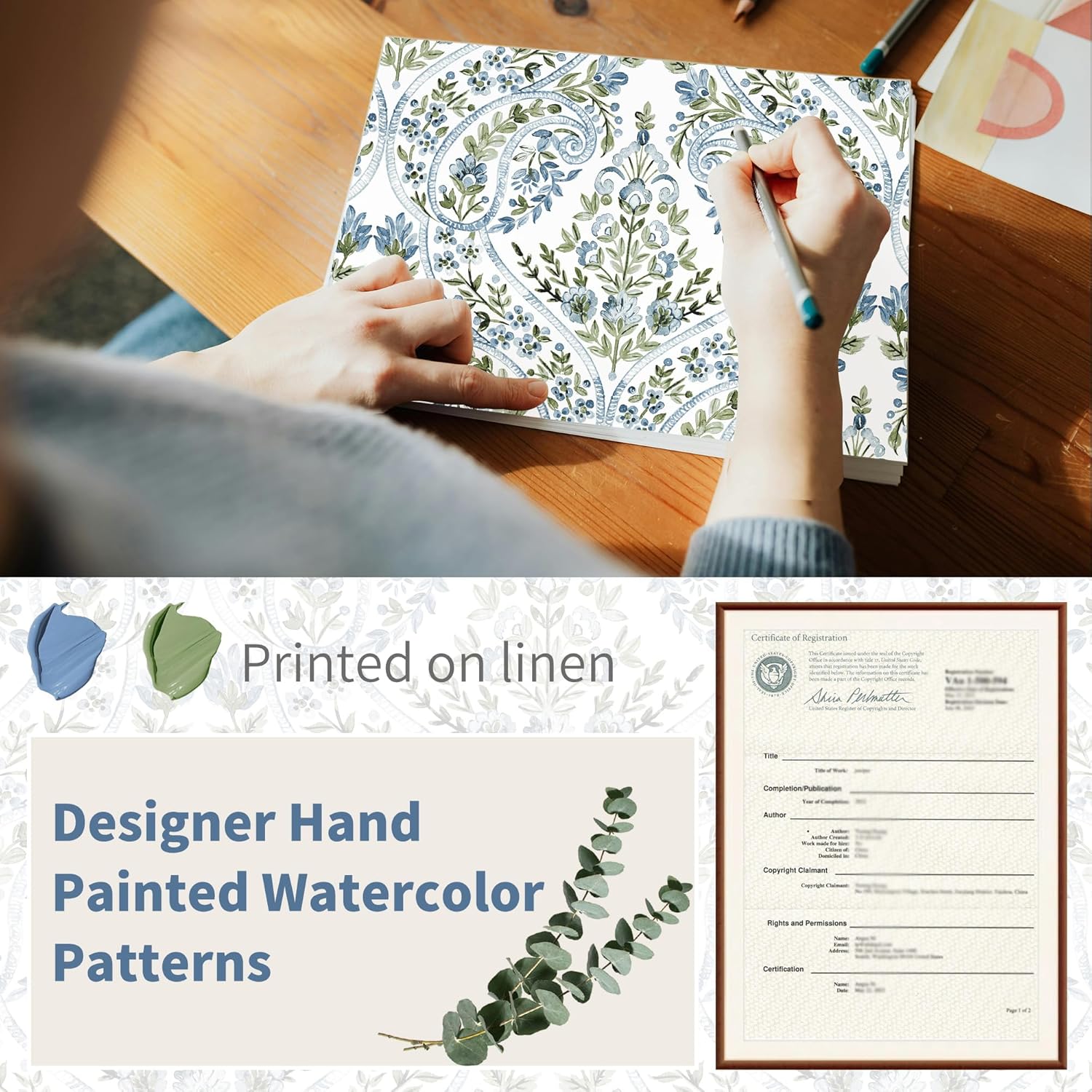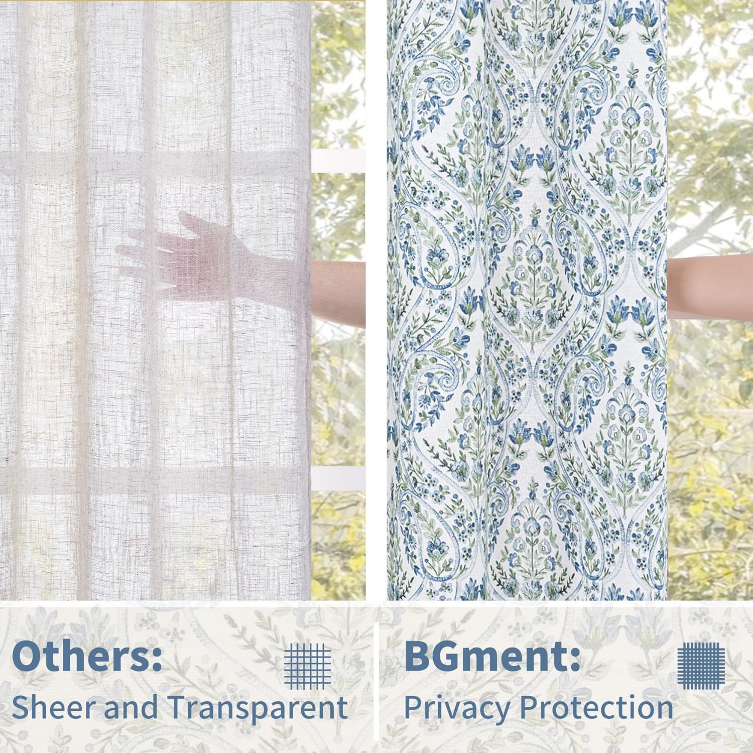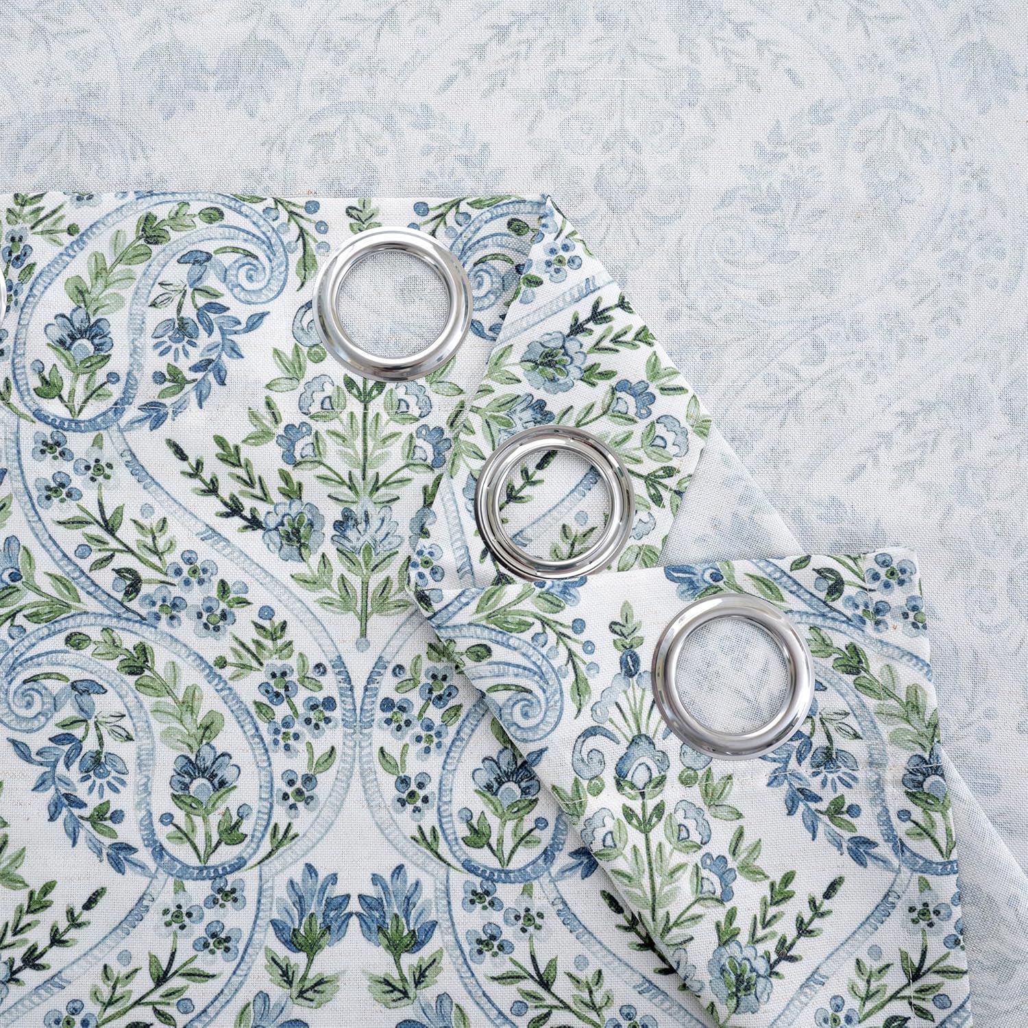 BGment Boho Curtains for Living Room – Linen Leaf Paisley Floral Pattern Light Filtering Grommet Window Semi Sheer Drapes for Farmhouse, 2 Panels, 52 x 84 Inch, Blue