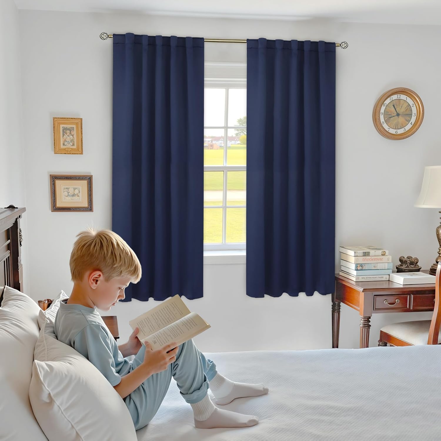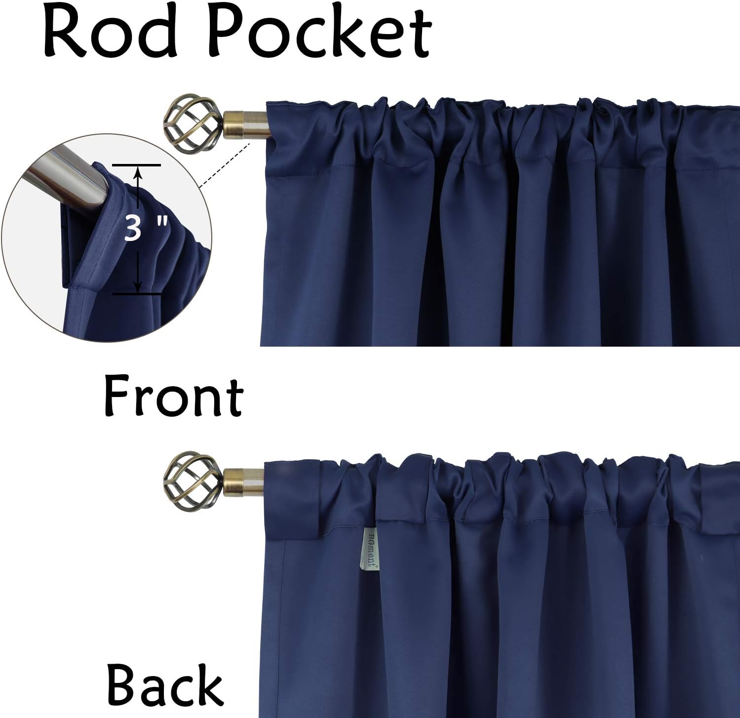 BGment Rod Pocket and Back Tab Blackout Curtains for Bedroom – Thermal Insulated Room Darkening Curtains for Living Room, 42×63 inch, 2 Window Curtain Panels, Navy Blue