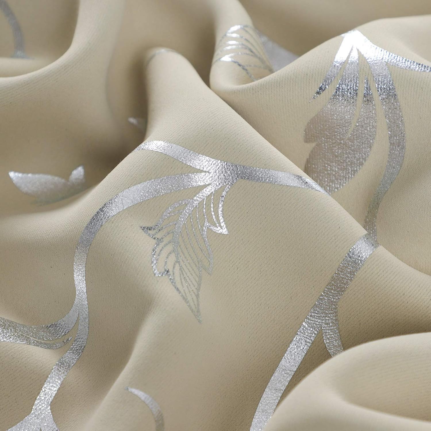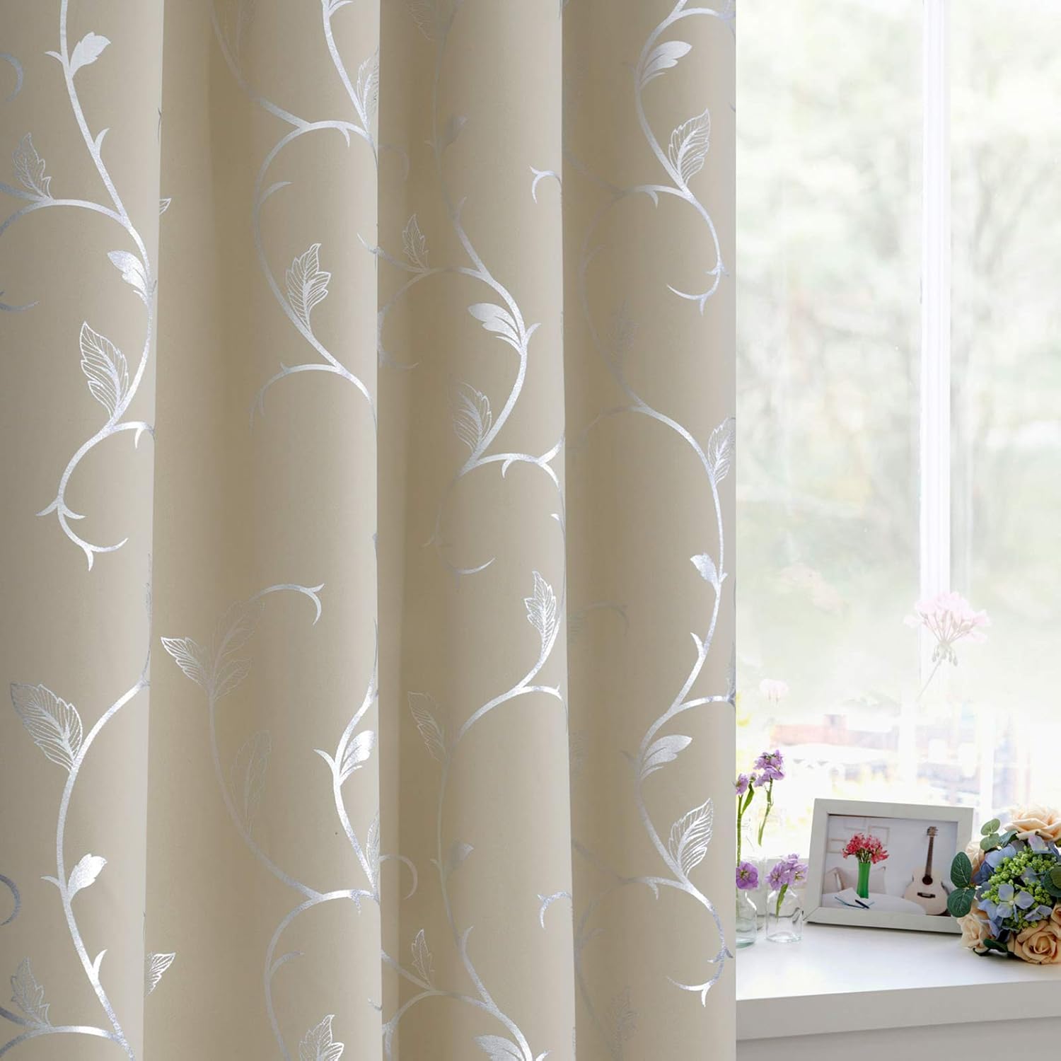 BUHUA Small Window Blackout Curtains Bedroom Darkening Curtain Pairs Silver Floral Print Blackout Curtains for Kitchen 38W×45L Beige2 Panels