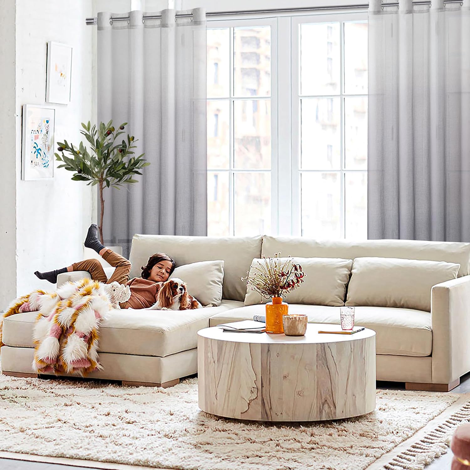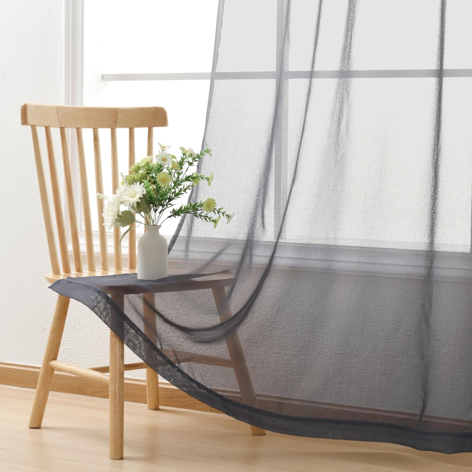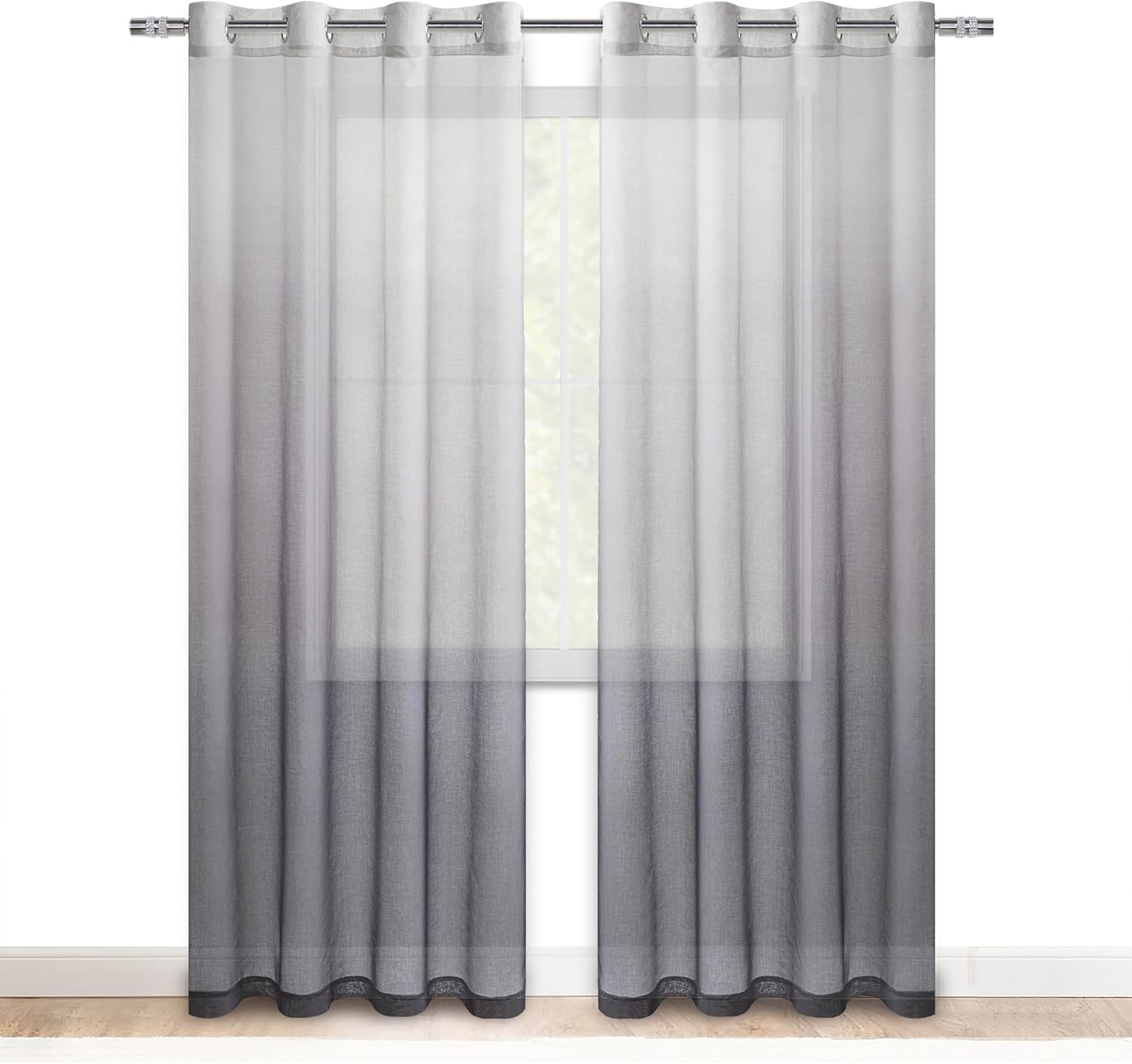 DWCN Grey Ombre Sheer Curtains – Gradient Semi Voile Grommet Top Window Curtains for Bedroom and Living Room, Set of 2 Panels, 52 x 84 Inches Long