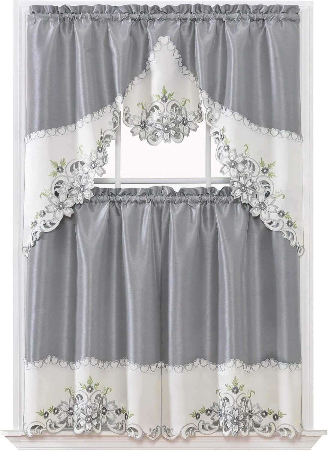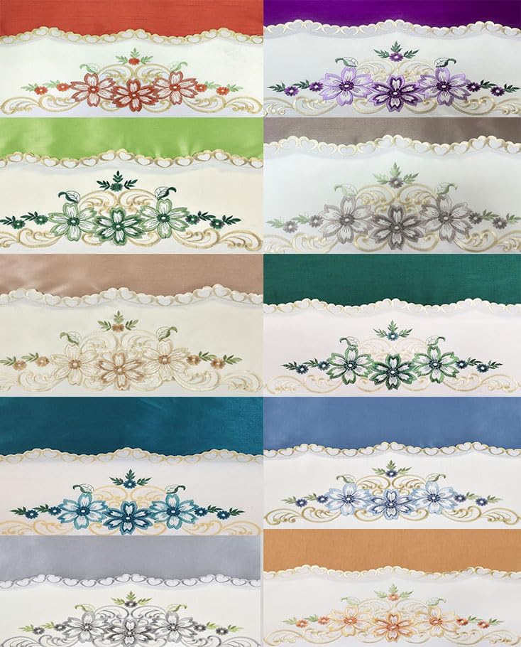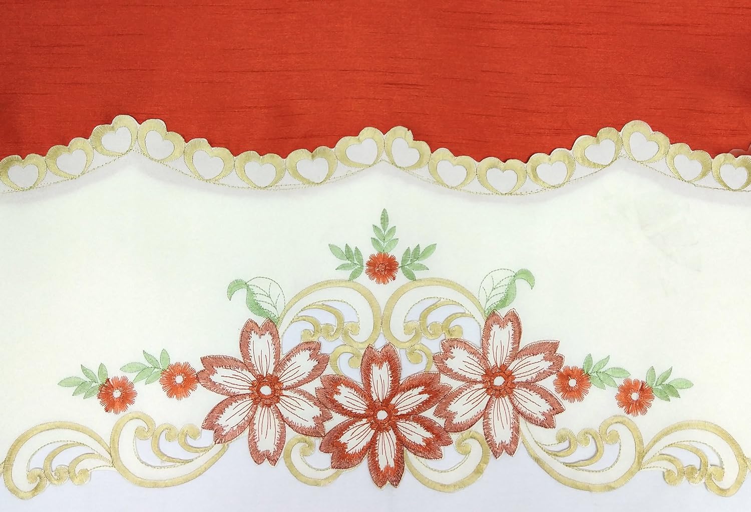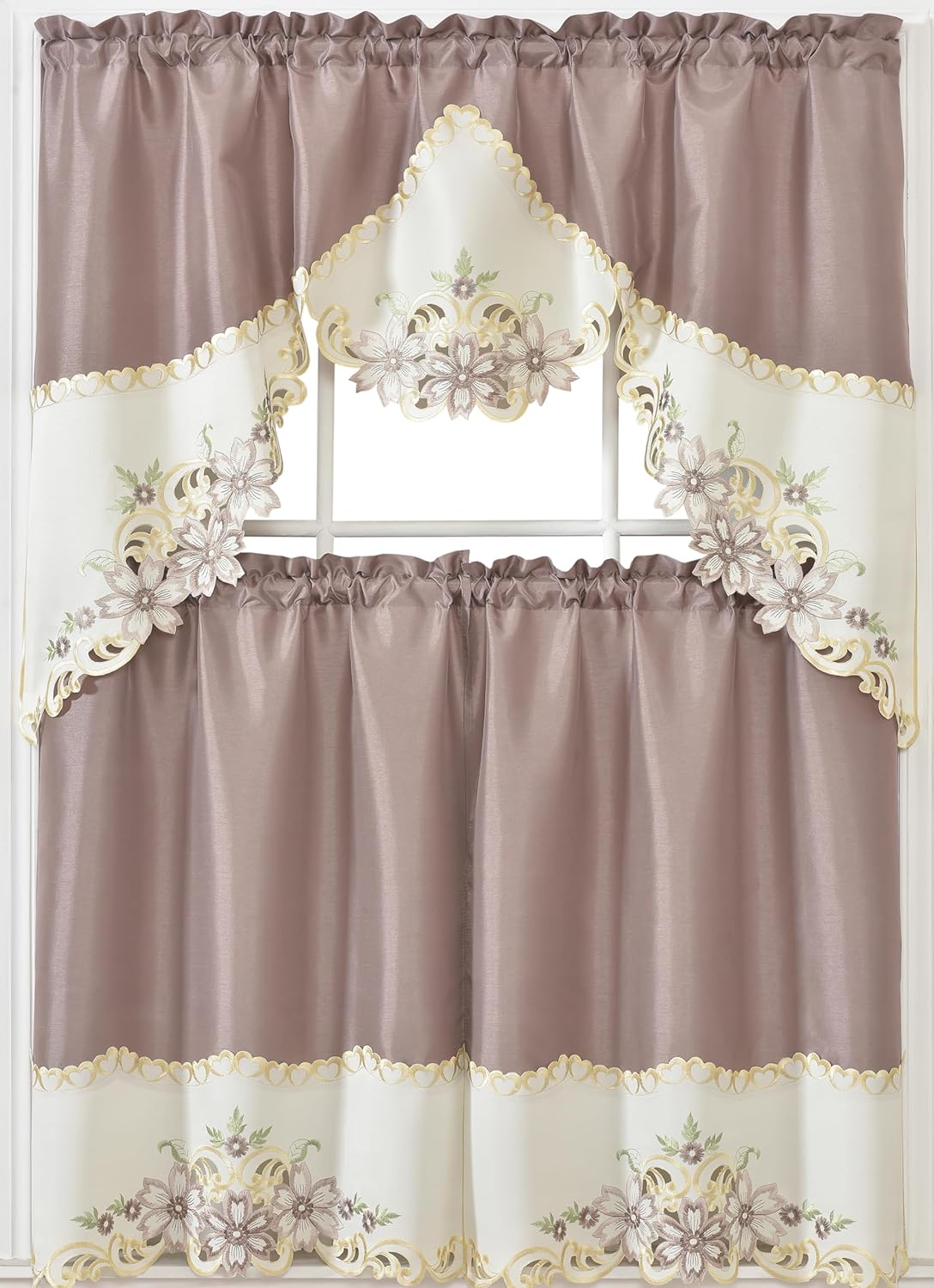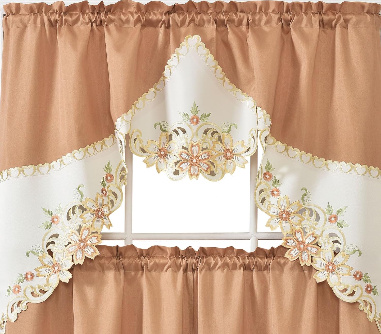 GOHD Arch Floral Kitchen Curtain Set/Swag Valance & Tier Set. Nice Matching Color Floral Embroidery on Border with cutworks (Rust)