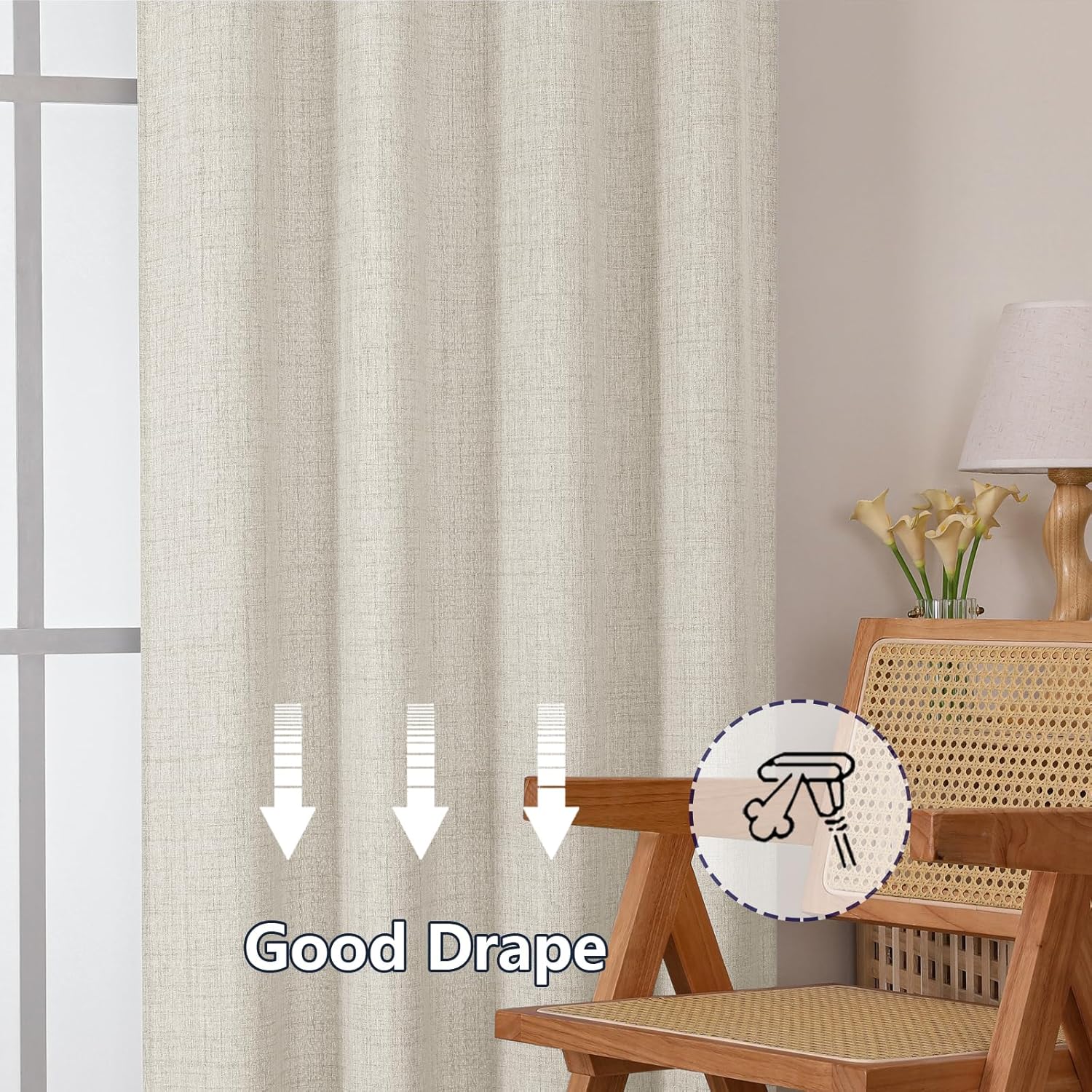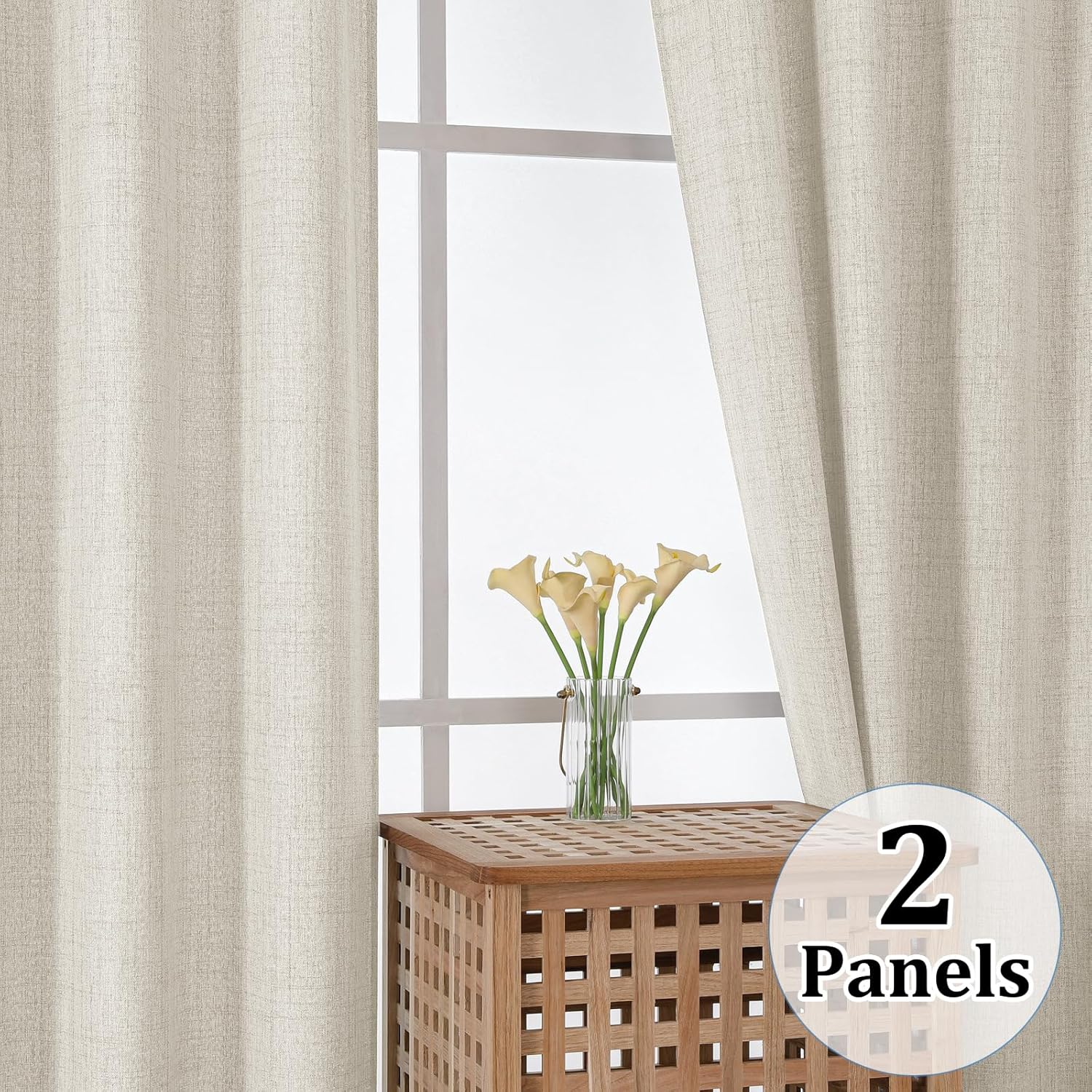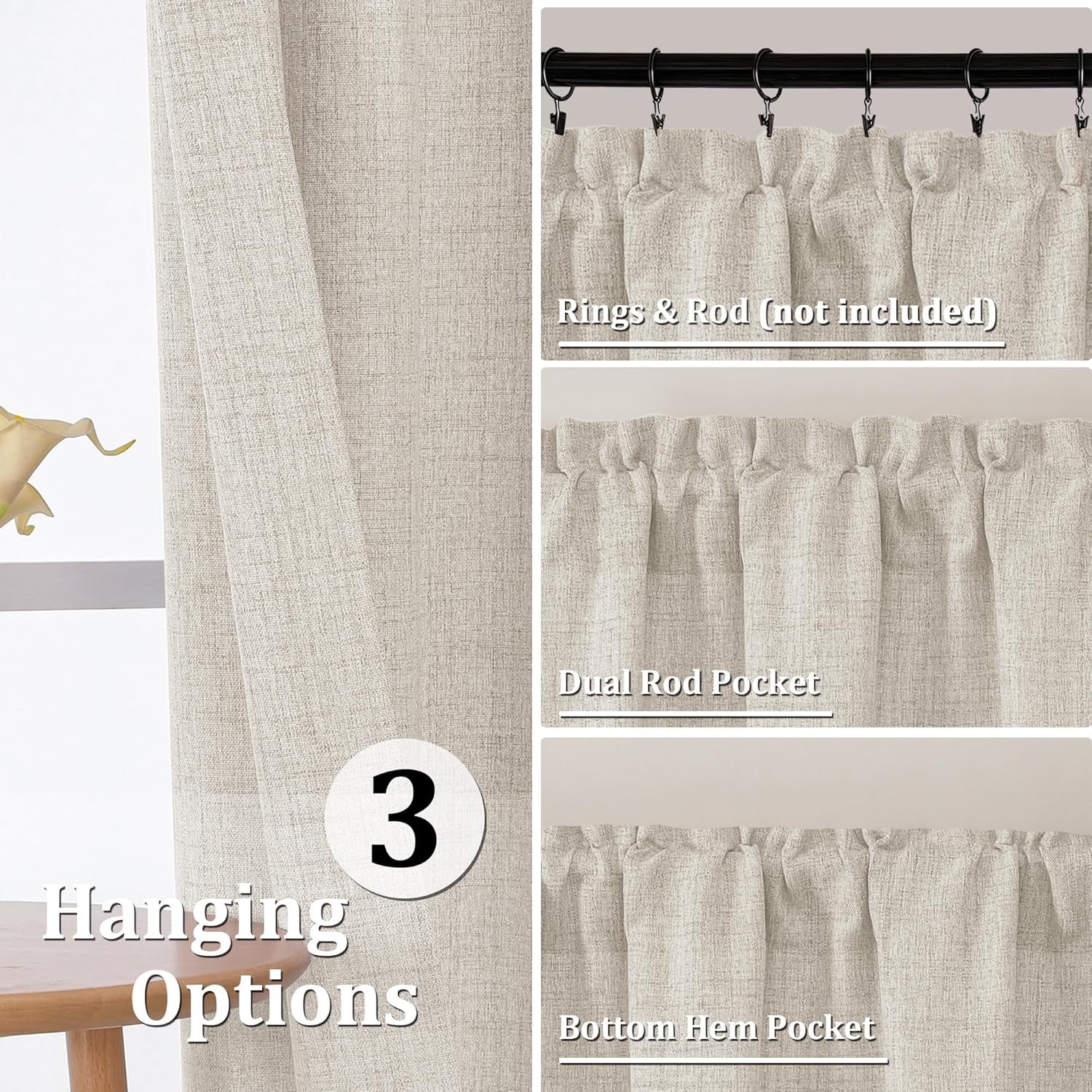 Gwine Natural Kitchen Curtains 36 Inch Length 2 Panels, Light Filtering Textured Short Half Window Cafe Curtains, Modern Soft Small Window Drapes for Bathroom Basement Bedroom, 30Wx36L inch, 2PCS