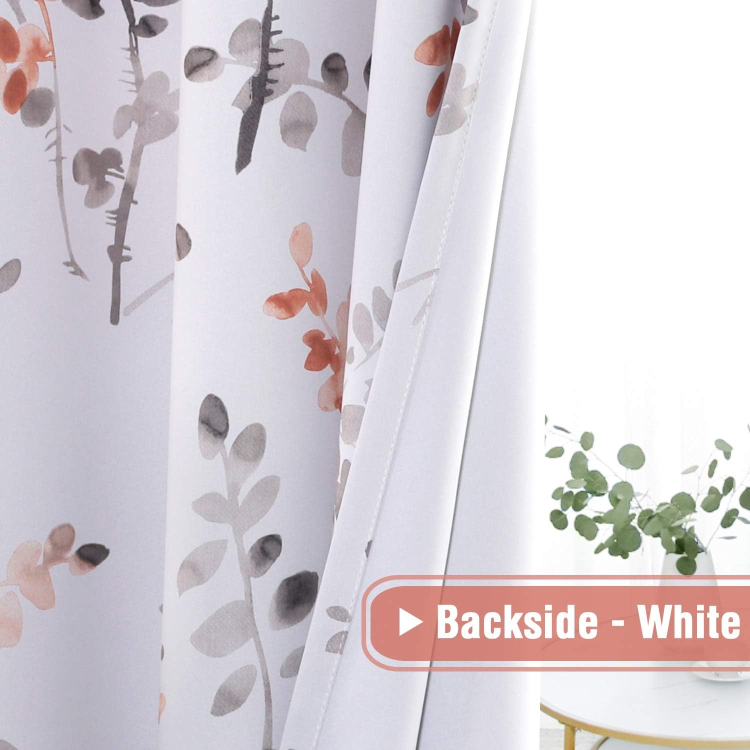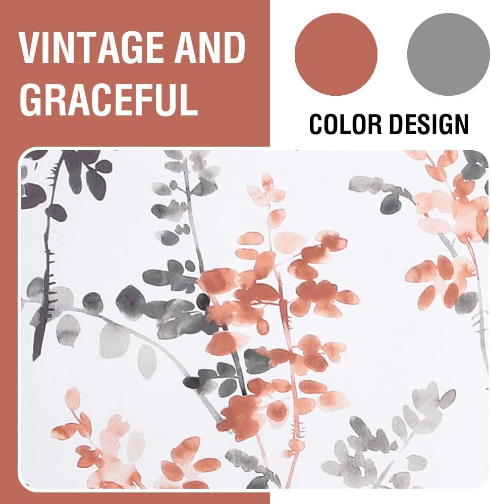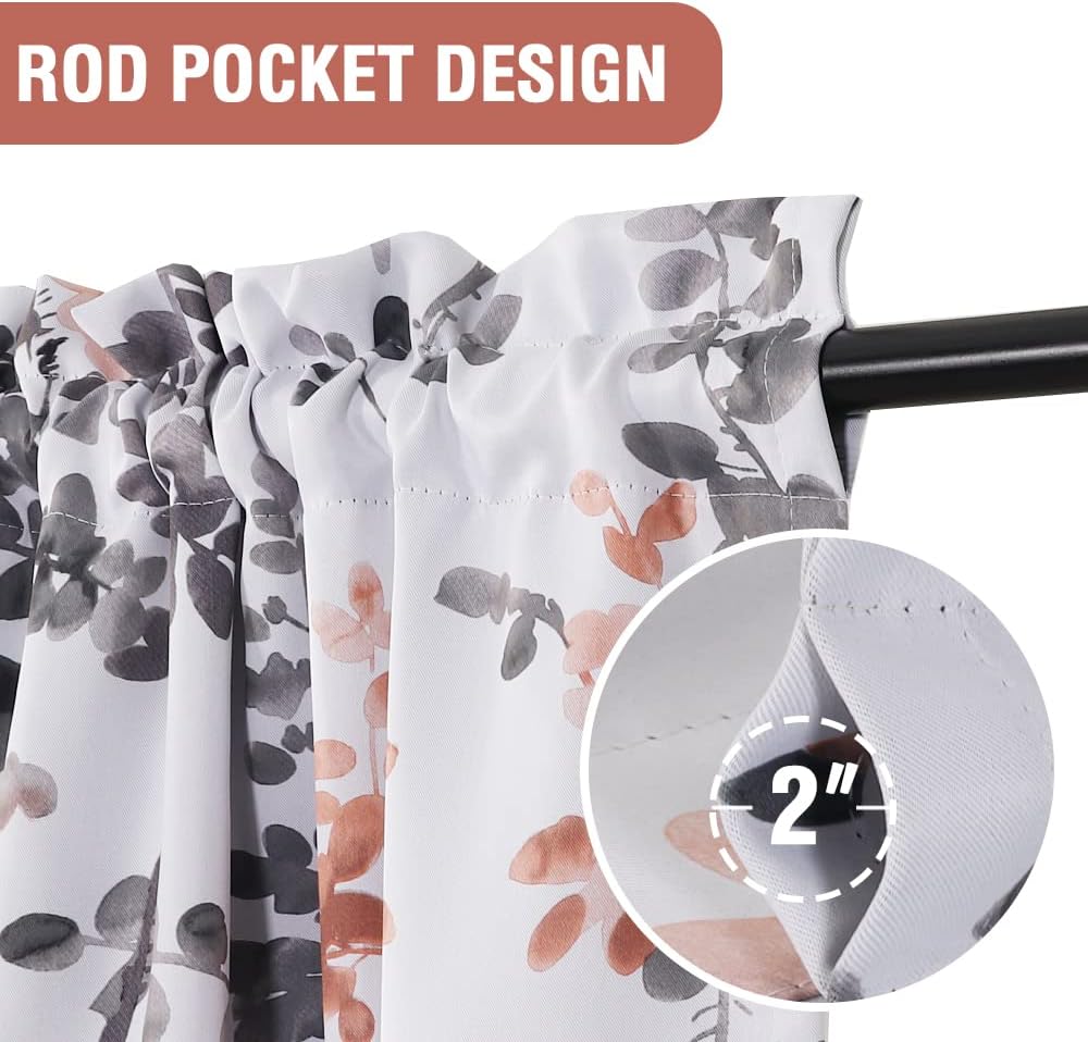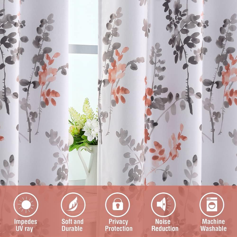H.VERSAILTEX Floral Curtains 63 Inches Long Printed Pattern Room Darkening Curtains for Bedroom Rod Pocket Window Treatment Curtains, 2 Panels, Classical Floral Grey and Coral