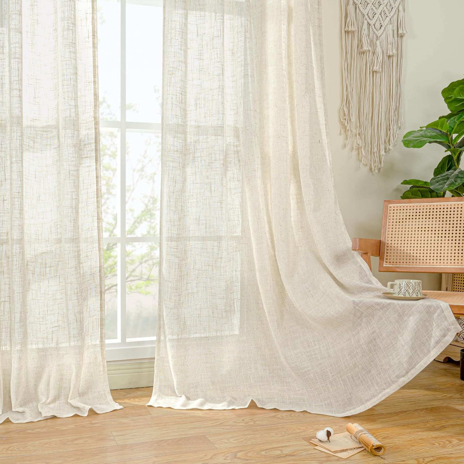 LAMIT Natural Ivory Linen Semi Sheer Curtains 84 inch Length, Cream Light Filtering Soft Thick Neutral Living Room Drapes with Bronze Grommet for Bedroom/Farmhouse, 2 Panels, 52 x 84 Inch