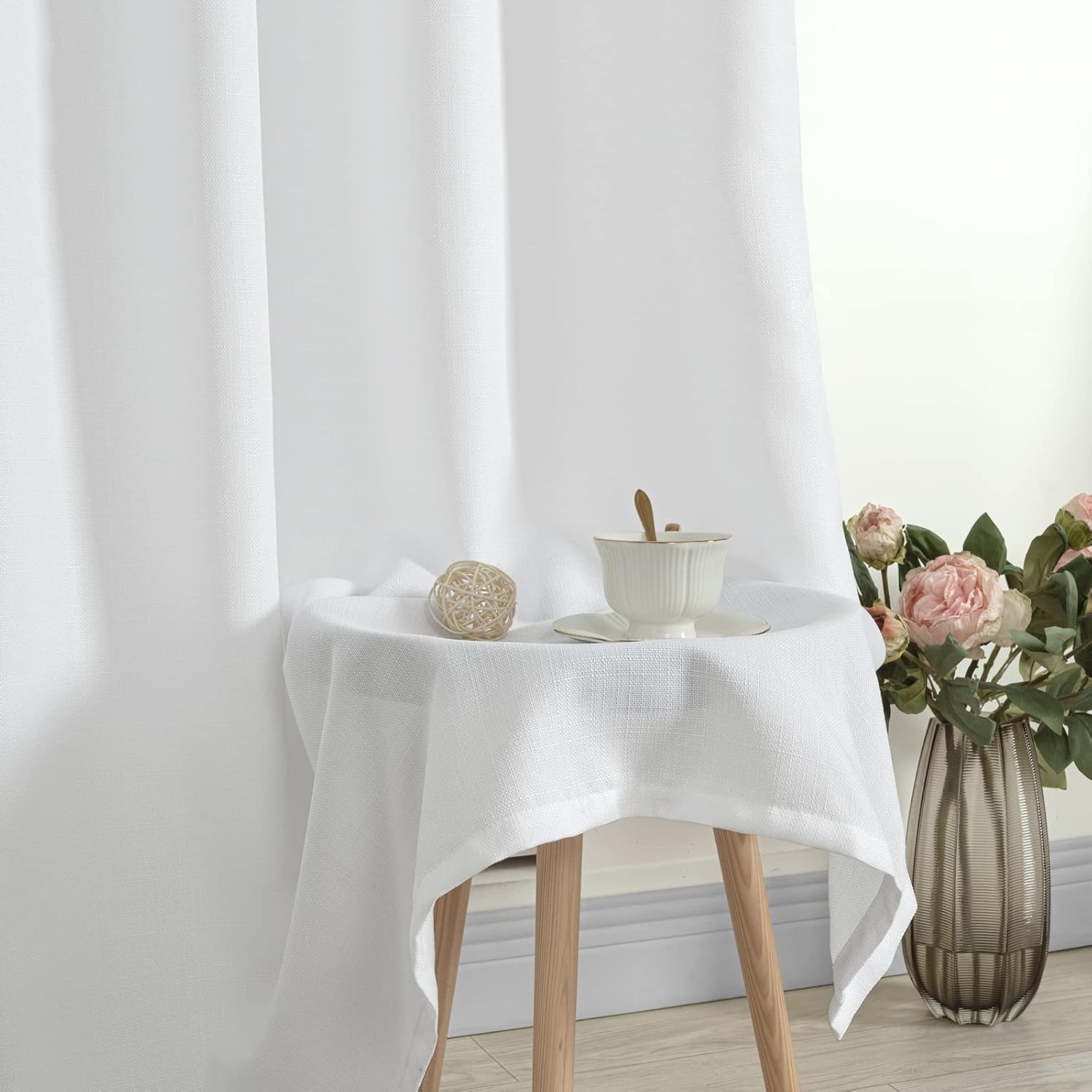 LAMIT White Linen Curtains 84 inches Long 2 Panels, Grommet Semi Sheer Light Filtering Neutral Panels Faux Linen Textured Privacy Living Room Drapes for Bedroom/Farmhouse, 52 x 84 Inch