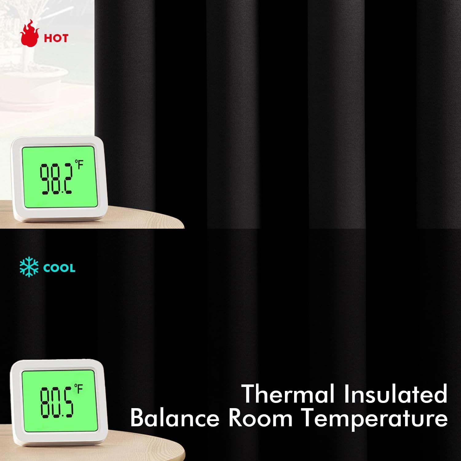 MIULEE Black Blackout Curtains for Bedroom Living Room 84 Inches Long 2 Panels, Thermal Insulated Room Darkening Drapes Solid Grommet Top Noise Reduction Light Blocking Halloween Window Treatments
