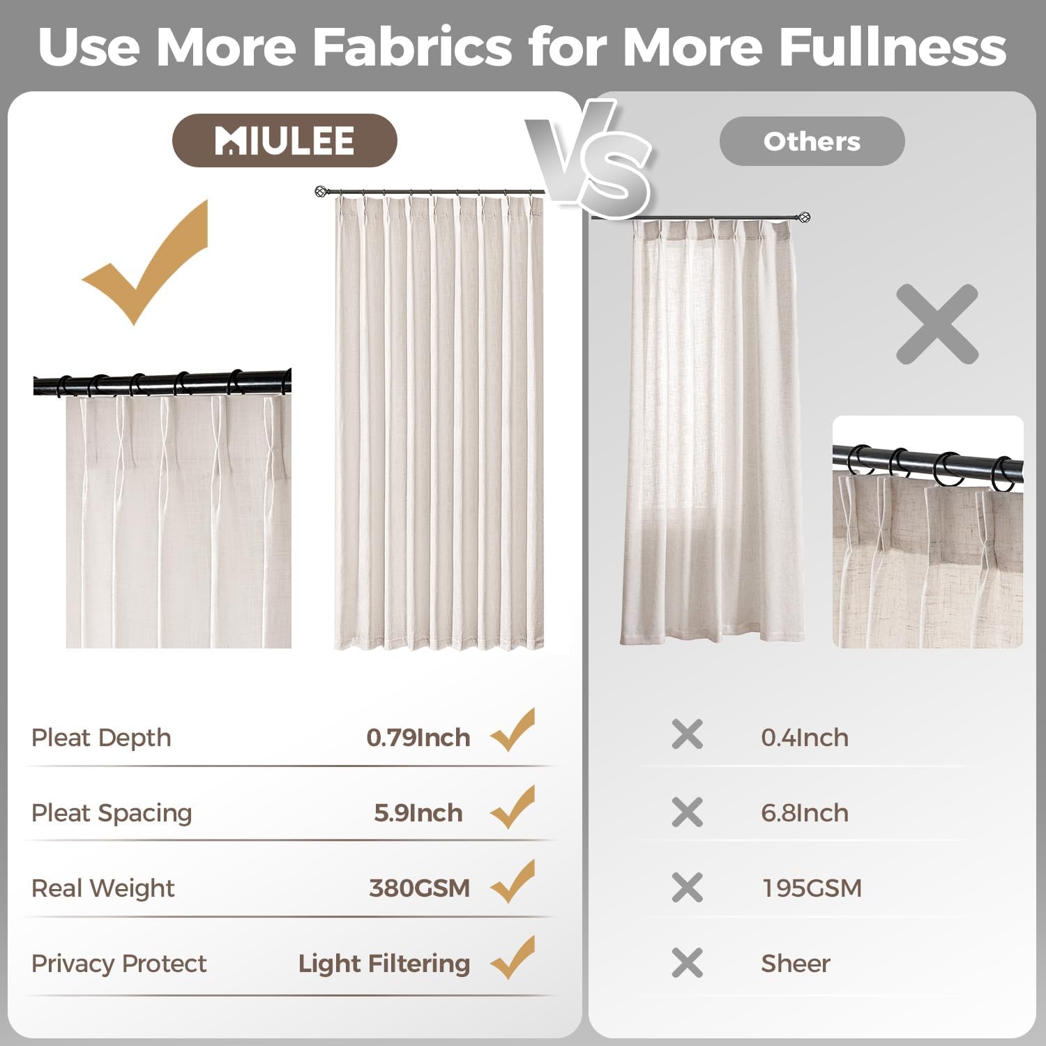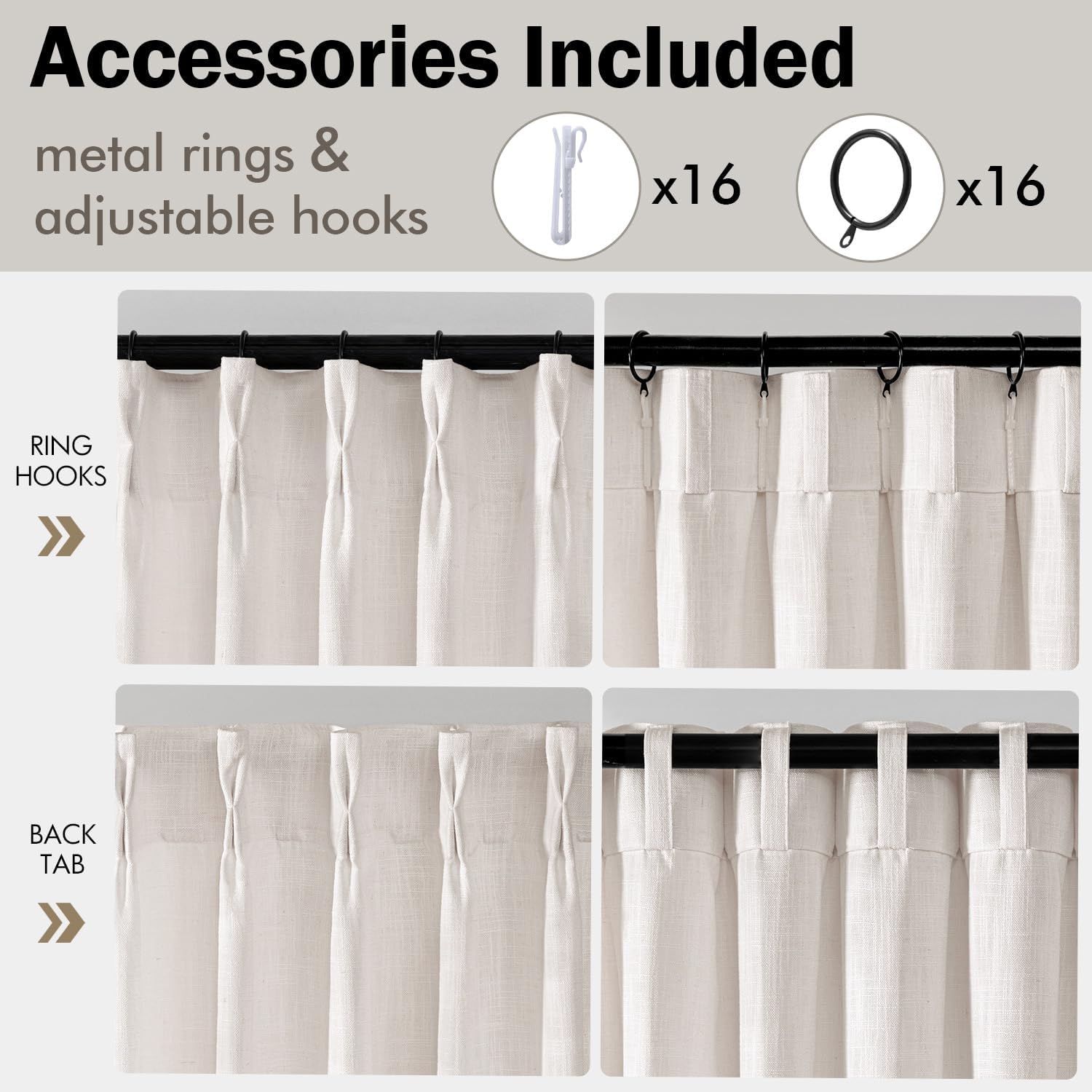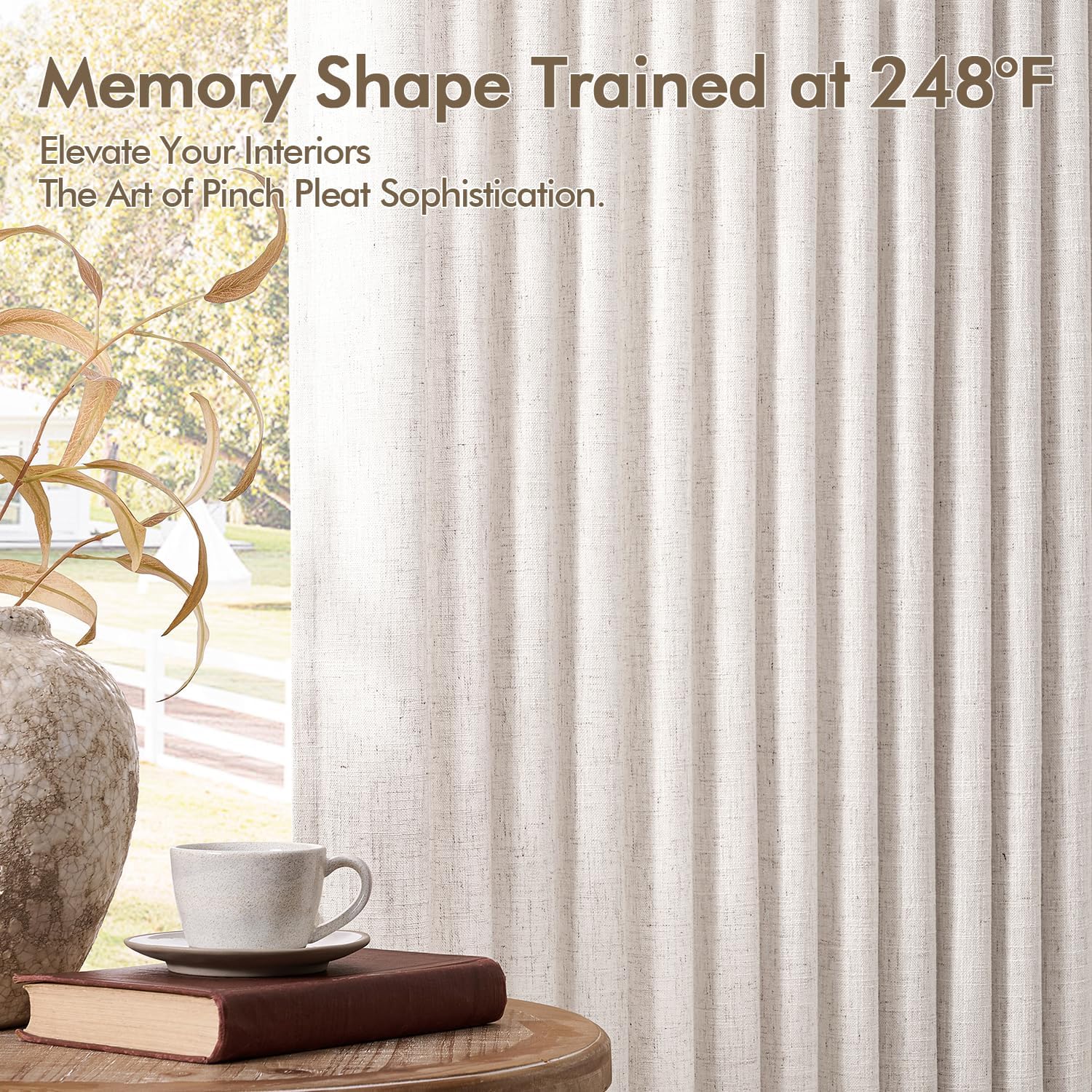 MIULEE Pinch Pleated Thick Linen Curtains 90 Inches Long 2 Panels for Living Room Bedroom, Memory Trained Pinch Pleat Drapes Back Tab Light Filtering Natural Ivory Cream Window Curtains with Hooks