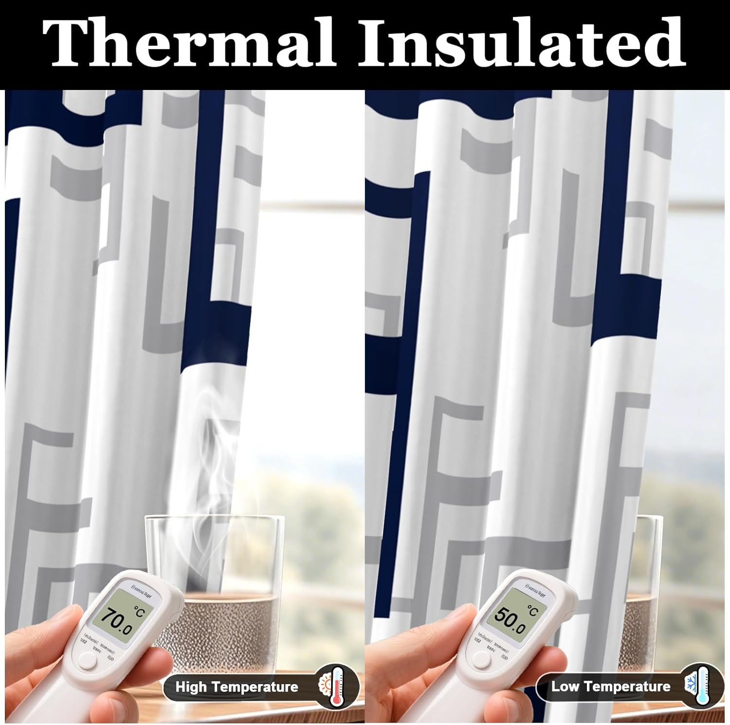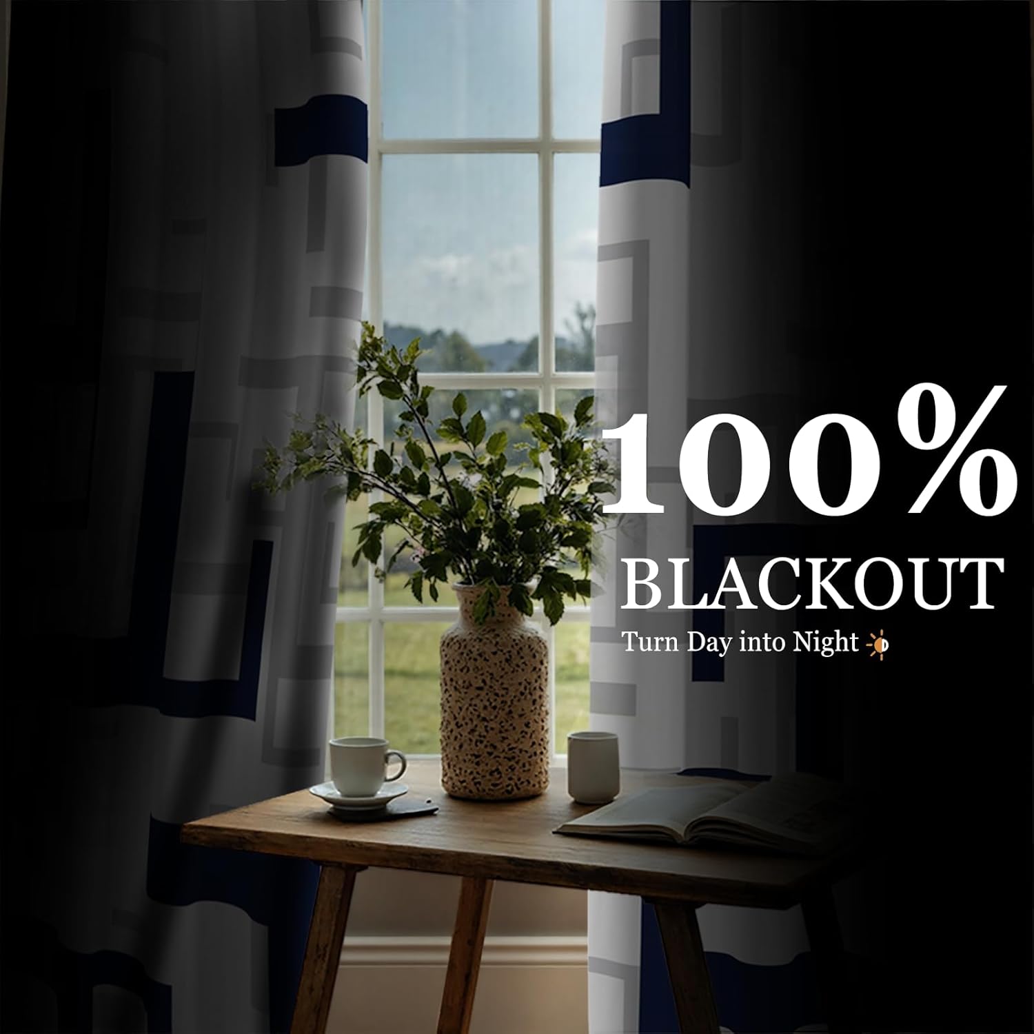 weesire Modern Blackout Curtains for Bedroom Living Room 2 Panels 100% Blackout Blue and White Pattern Curtains Abstract Curtains, 52×84 Inches