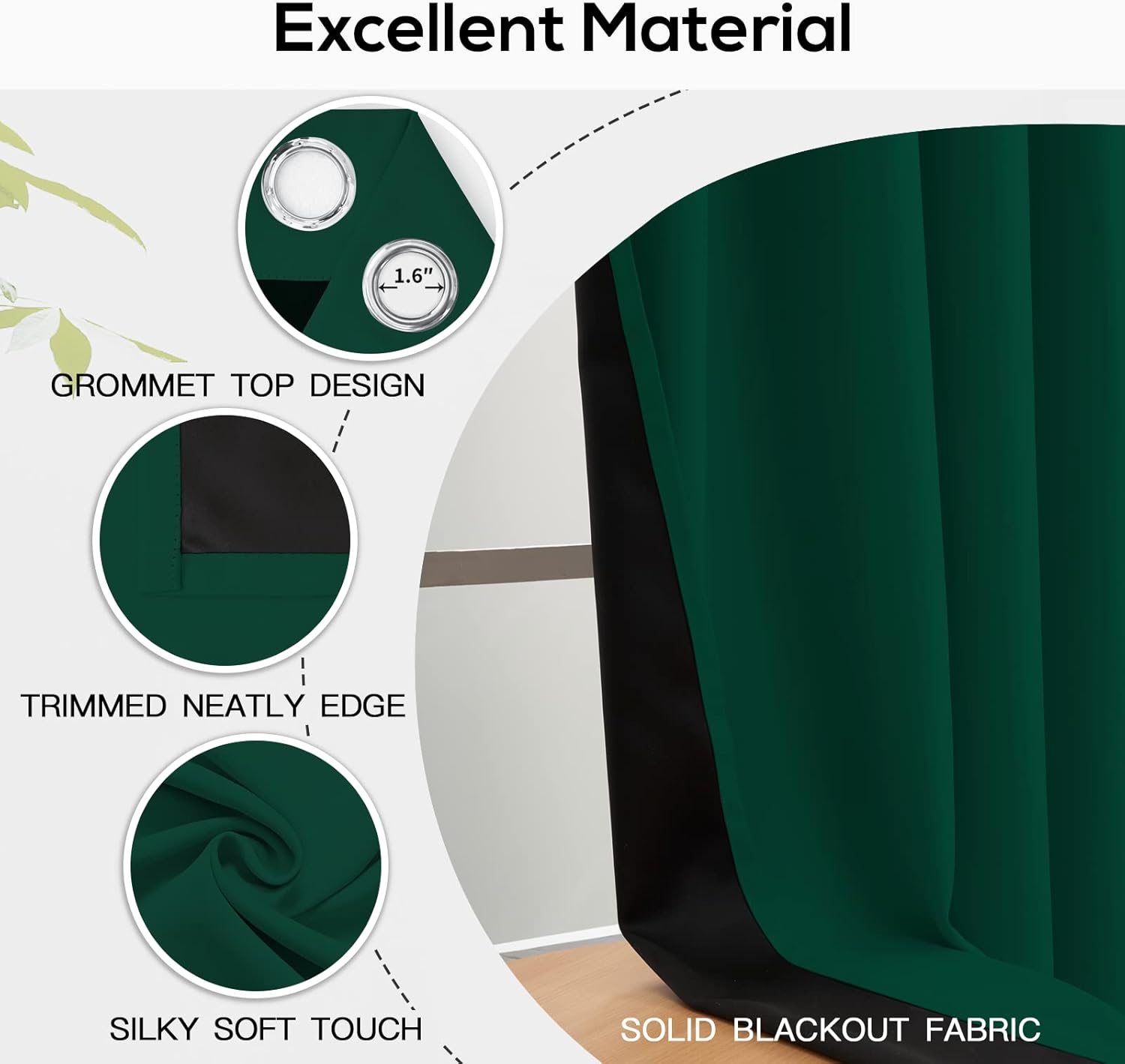 Yakamok 100% Blackout Curtains for Bedroom 84 Inch Length, Emerald Green Total Light Blocking Drapes with Black Backing, Thermal Insulated Solid Grommet Panels for Living Room, 52Wx84L, 2 Panels
